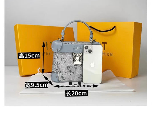 Clutch - Blue Leather Trim Box - Nature Pattern